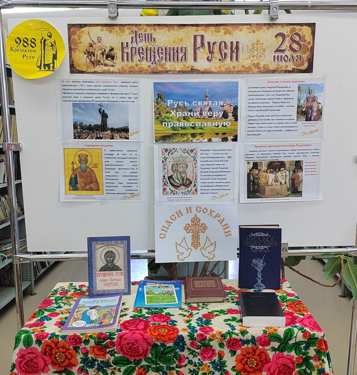 В библиотеке села Тихоречное в четверг, 24 июля, была оформлена книжная выставка «Русь святая. Храни веру православную», посвящённая Дню Крещения Руси. Экспозиция включает сборник литературы, рассказывающей о значении принятия христианства для русского народа и его культурного и духовного развития. Посетители библиотеки получат возможность ознакомиться с историческими фактами, православными традициями и произведениями, отражающими глубокие религиозные и национальные ценности. Мероприятие направлено на укрепление духовного единства и воспитание уважения к православной вере.